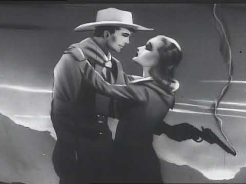 This black-and-white trailer from the 1930s-1940s promotes an upcoming Western film, capturing the rugged landscapes and thrilling action typical of the genre. Preserved on PA-1953, the trailer showcases classic Western themes, likely including scenes of horseback riding, shootouts, and frontier adventure, inviting audiences to escape to the wild, untamed West. This piece reflects the popularity of Westerns during the era, promising viewers a taste of the iconic American spirit and the excitement of life on the frontier.