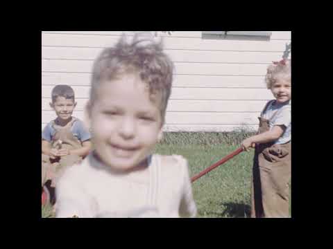 This 1940s home movie offers a heartwarming glimpse into family and community life, capturing moments of children playing with paper windmills, gathering in gardens, and enjoying outdoor activities. Scenes include toddlers being spun around by a man, siblings sharing affectionate kisses, and babies being cared for in prams. The footage reflects a joyful, close-knit community celebrating simple pleasures, with visits from guests and tender interactions between family members.